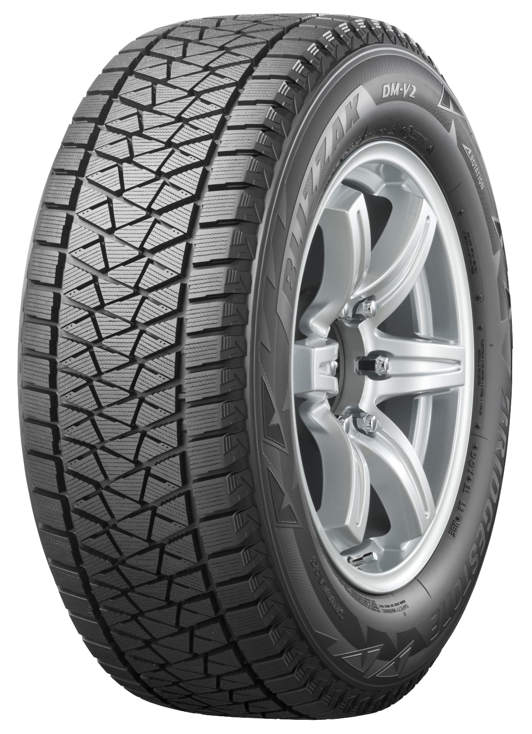 Разрабатывая Blizzak DM-V2, японские шинники особое внимание уделили обеспечению максимальных сцепных свойств на снегу и льду. Для достижения этой амбициозной цели была проделана огромная работа, коснувшаяся, прежде всего, протекторного рисунка. Он заметно изменился по сравнению с предыдущей моделью, обеспечивая при этом более равномерное распределение внешнего давления по пятну контакта. Это позволило значительно отодвинуть момент срыва колеса в пробуксовку, что, в свою очередь, улучшило эффективность разгона, управляемость и устойчивость при движении по снегу. При этом рассчитанная при помощи средств компьютерного моделирования система перекрестных каналов, специальные «ловушки снега» и увеличенное количество ламелей обеспечивает надежное сцепление на снегу во всех направлениях.